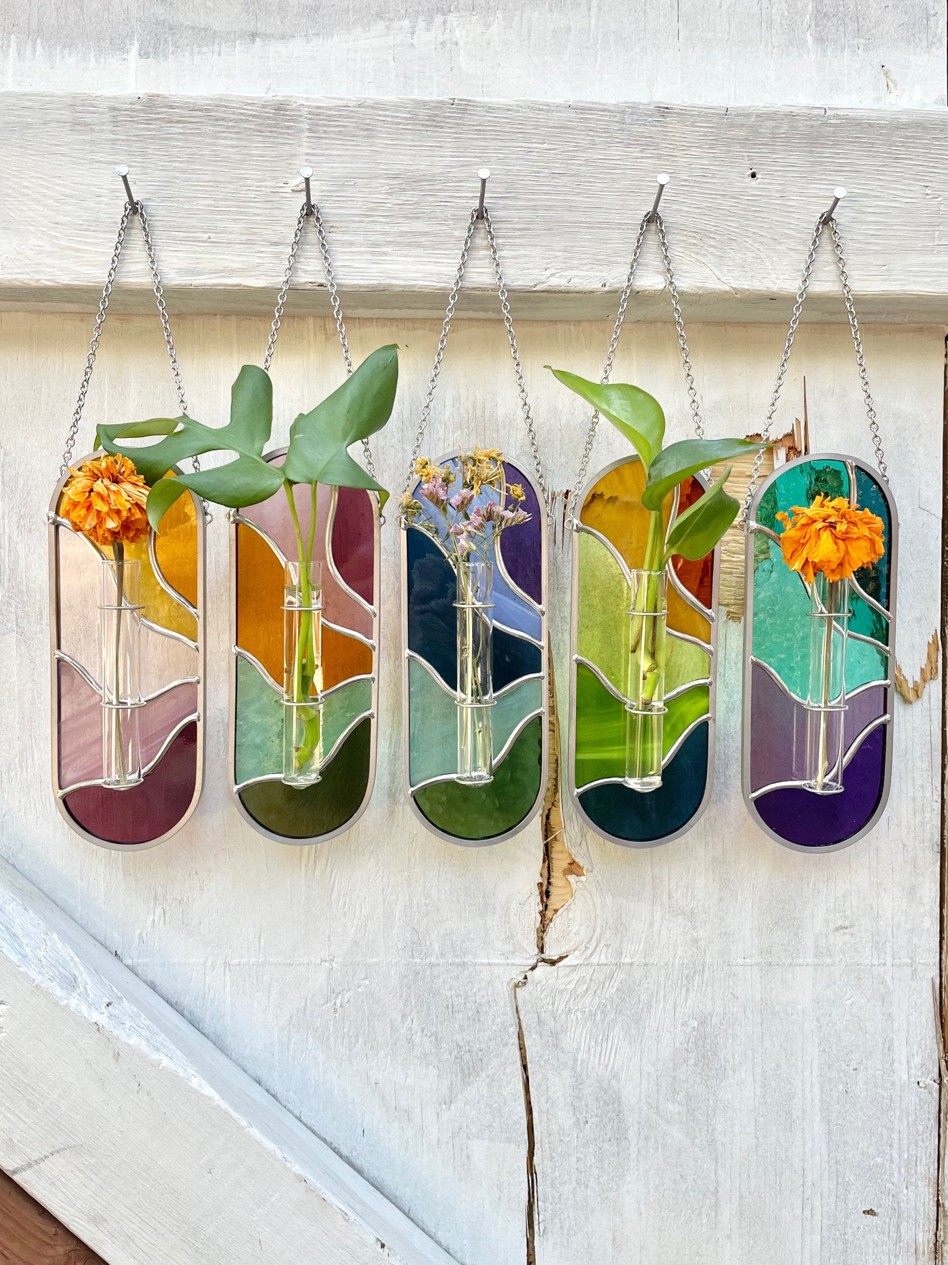 Comes with a 4 “ glass tube for propagating, fresh cut or dried flowers. Tube is removable for easy cleaning/watering.