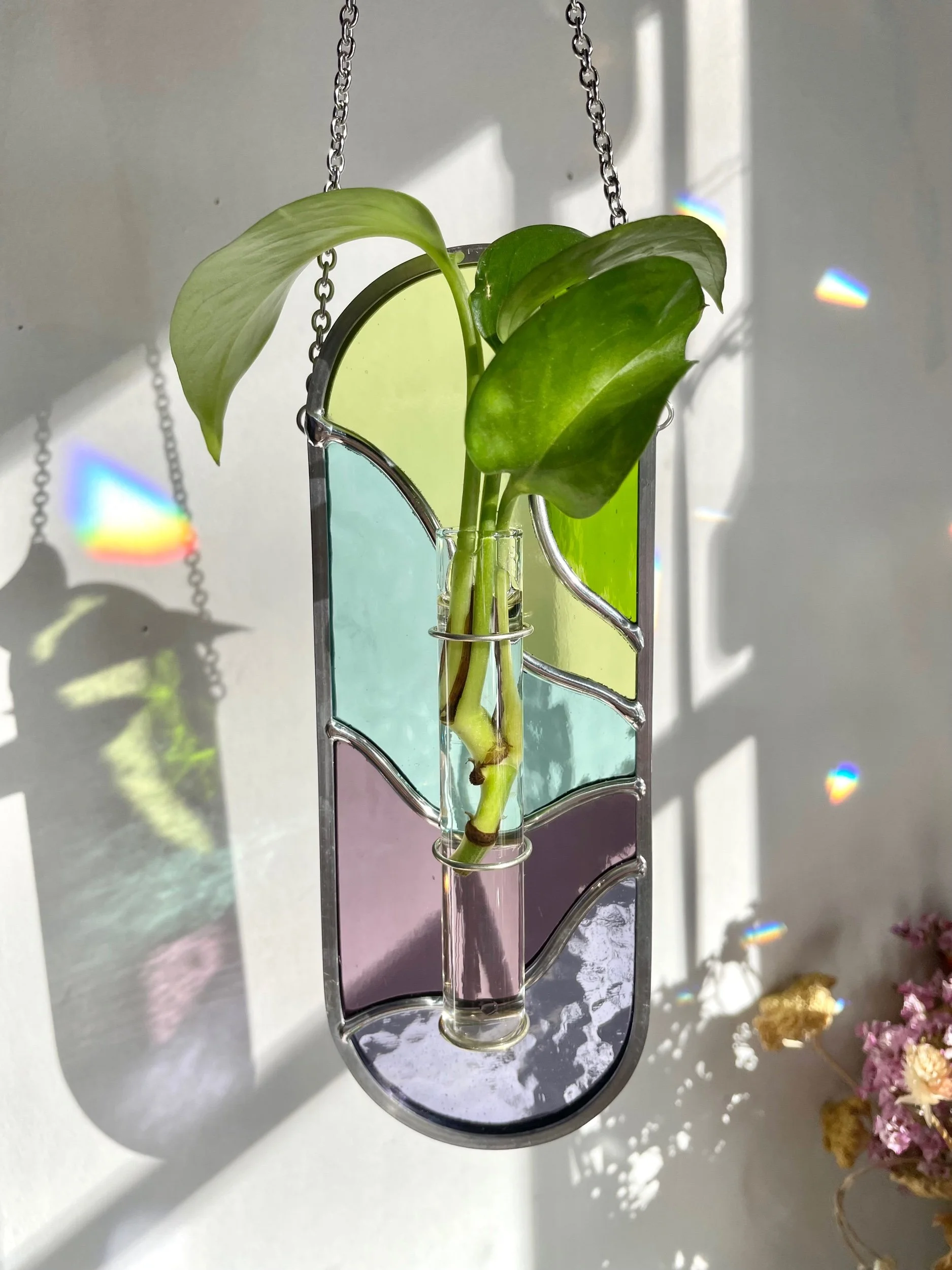 Comes with a 4 “ glass tube for propagating, fresh cut or dried flowers. Tube is removable for easy cleaning/watering.