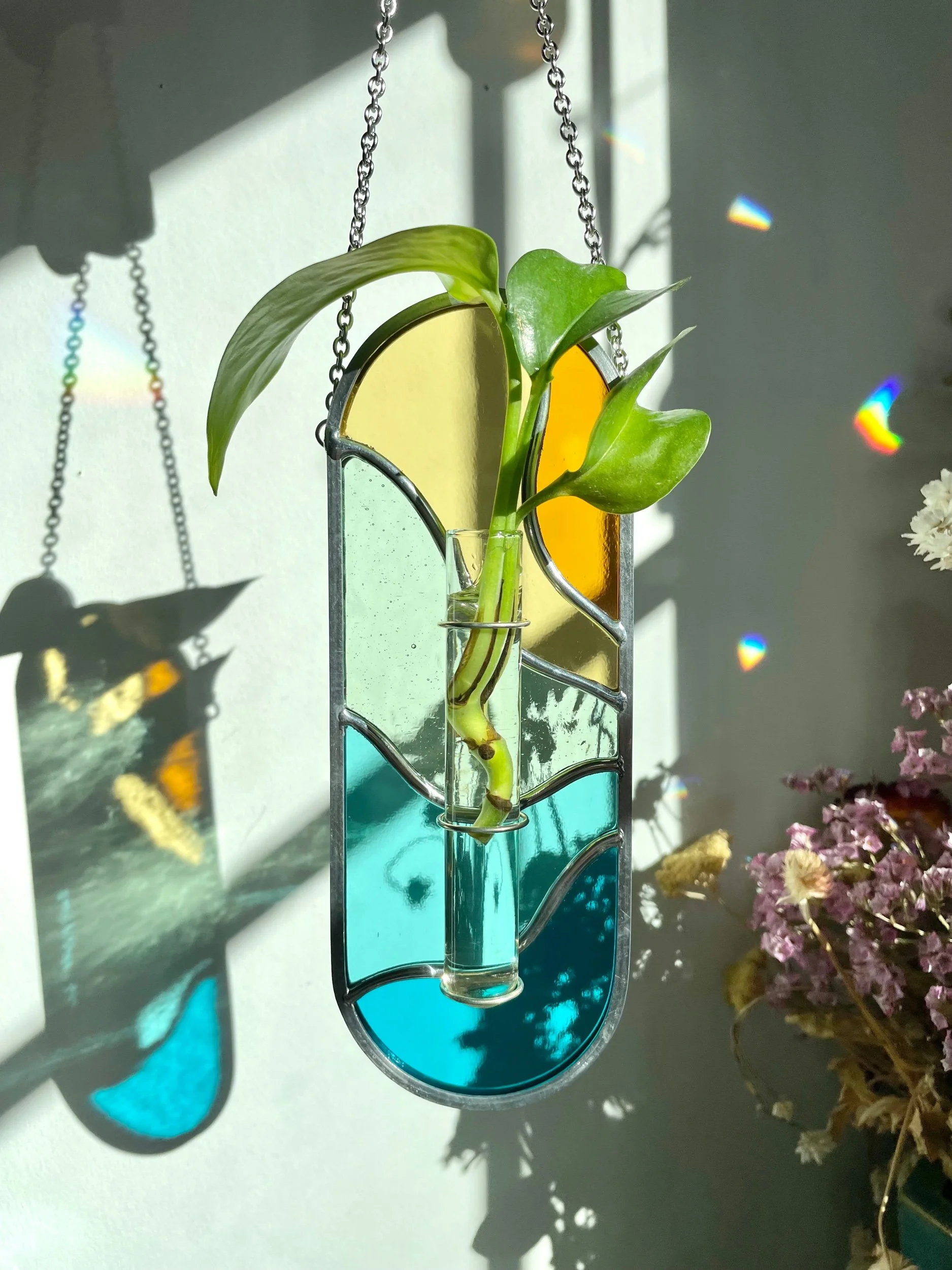 Comes with a 4 “ glass tube for propagating, fresh cut or dried flowers. Tube is removable for easy cleaning/watering.