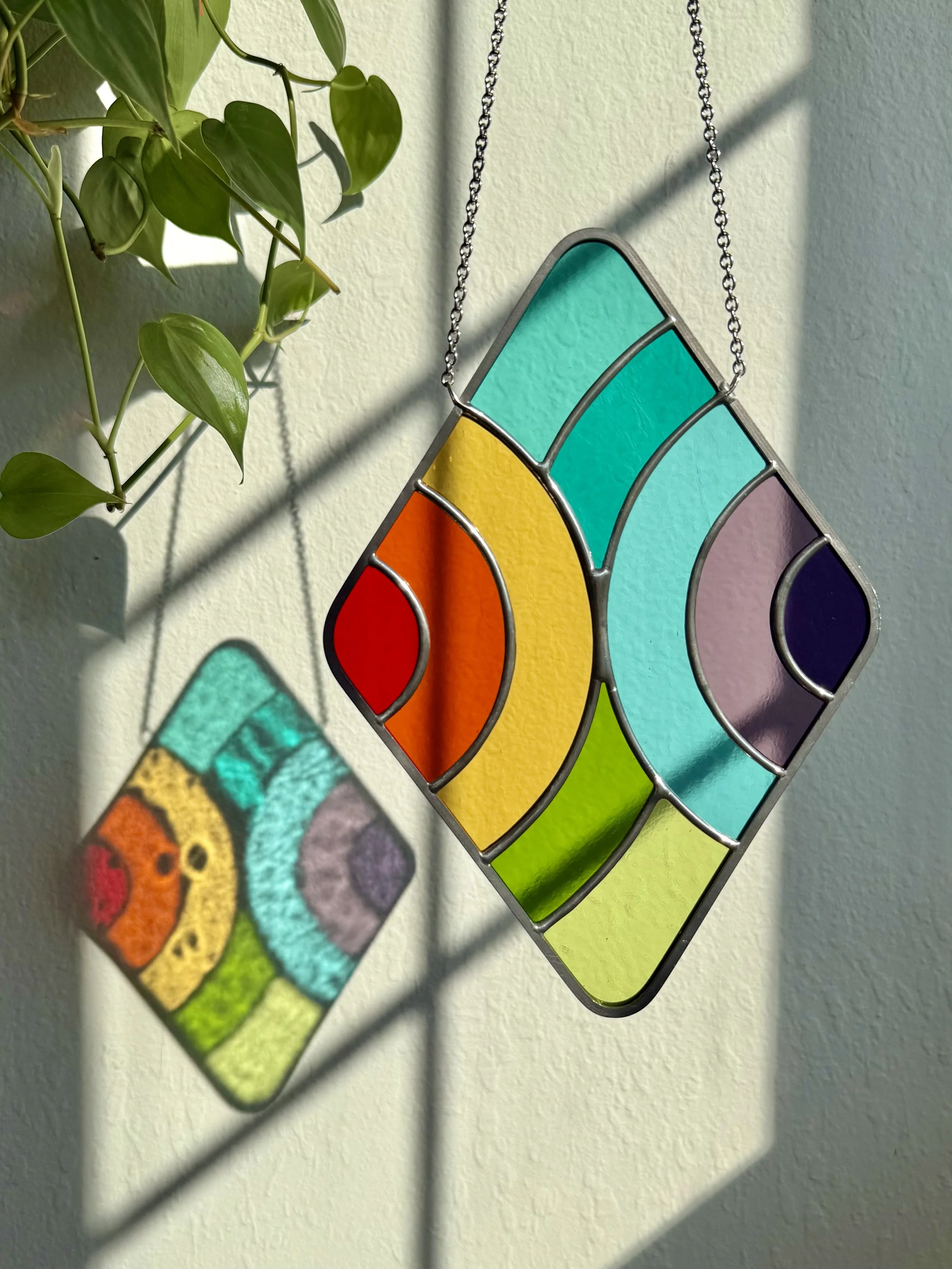 The piece is made with a full rainbow of glass and sure packs a punch of color!